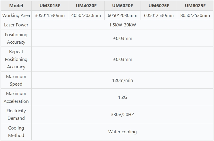 | Model | UM3015F | UM4020F | UM6020F | UM6025F | UM8025F |