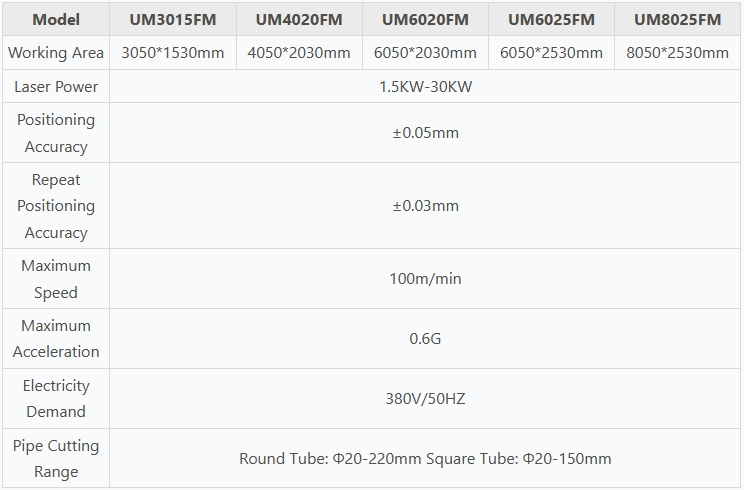 | Model | UM3015M | UM4020M | UM6020M | UM6025M |