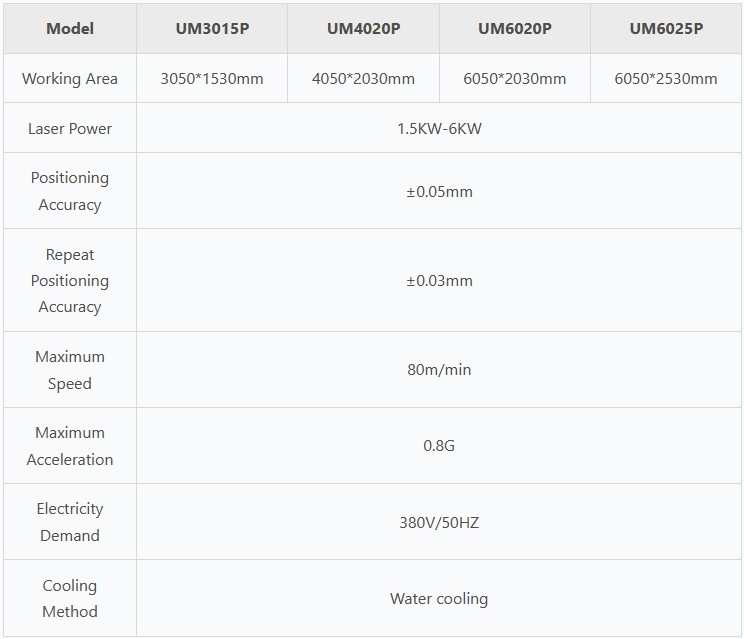 | Model | UM3015P | UM4020P | UM6020P | UM6025P |